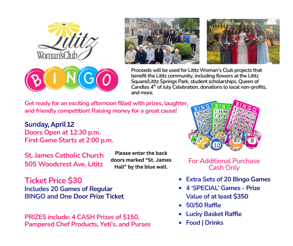 Lititz Woman’s Club BINGO Fundraiser! Get your tickets NOW – they are going FAST!